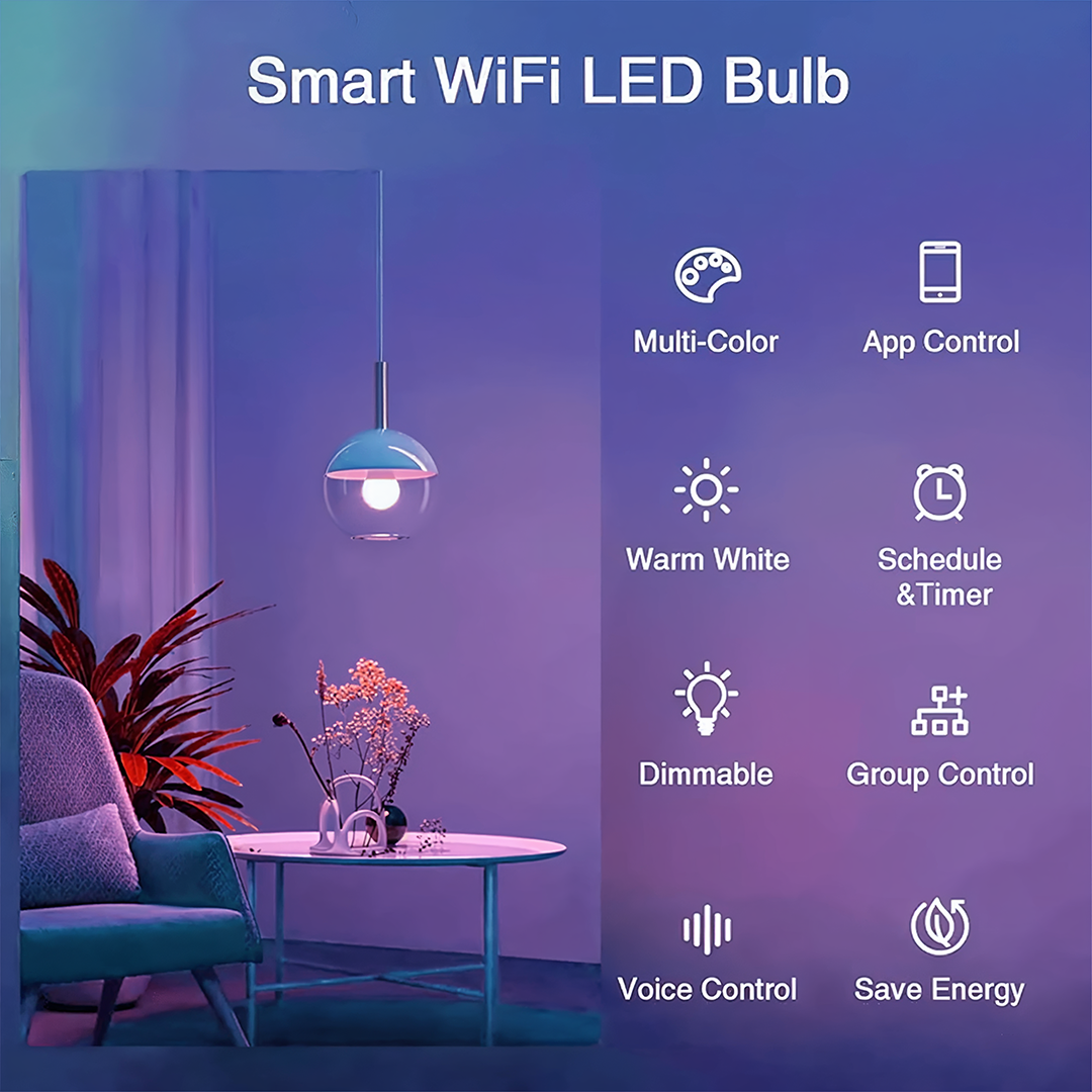 With built-in WiFi connectivity, you can control the bulb through your smartphone using the Smart Life or Tuya Smart app. Change colours, adjust brightness, set timers, or switch it on and off — all from your couch or even while you’re away from home. Plus, with voice control compatibility for Amazon Alexa, Google Assistant, and Samsung SmartThings, you can manage your lighting completely hands-free.